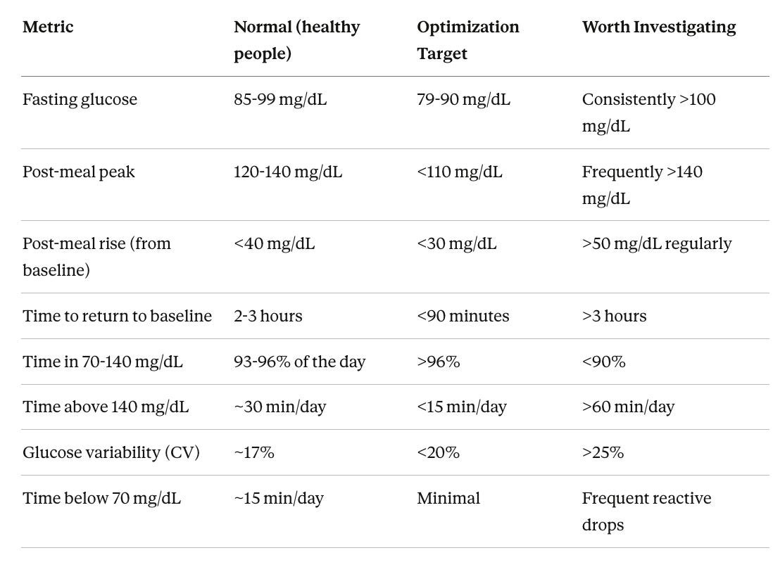 This is the question everyone asks, and the answer has gotten clearer in the last few years as more studies have put CGMs on healthy people. Here’s a quick reference based on the best available data.