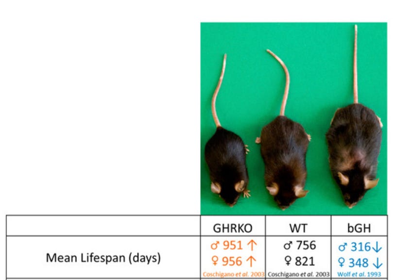 Mouse Data: Reduced GH/IGF-1 Signaling Extends Lifespan