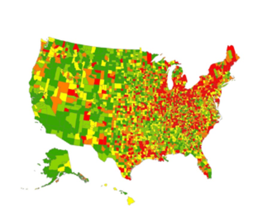 Below is the “PD belt” in the US, according to a study based on data from 36 million Medicare recipients from the University of Washington.